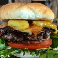 THE MAUI BURGER!!! 7oz of juicy chopped chuck topped with grilled Black Forest ham, sweet pineapple rings, melted Swiss cheese and a teriyaki drizzle on a bed of baby green spring mix, tomato and onion slices in a fresh locally baked French...