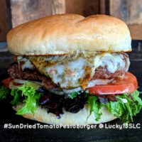 THE SUN DRIED TOMATO PESTO BURGER is 7oz of juicy chopped chuck topped with a delicious mix of sun dried tomatoes and pesto and smothered with melted smoked provolone cheese. Served on a pile of sweet baby greens plump tomato and onion slices with a fresh herb aioli in a...