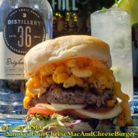 THE SMOKED MAC & CHEESE BURGER!! 7oz of delicious chopped chuck topped with our four cheese smoked Mac and cheese on a bed of sweet baby spring mix, tomato and onion slices in a fresh locally baked French...